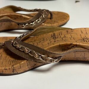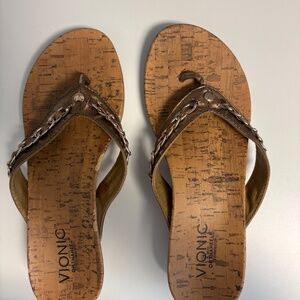 Vionic Orthaheel Bronze Flip Flop Wedge Sandals Cork Sz 7