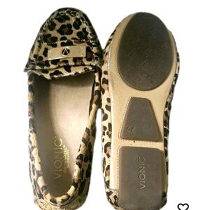 Vionic Orthaheel Sydney Driver Loafers Calf Hair Leopard Flats Women's Size 6.5