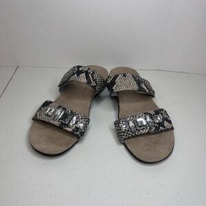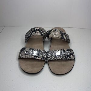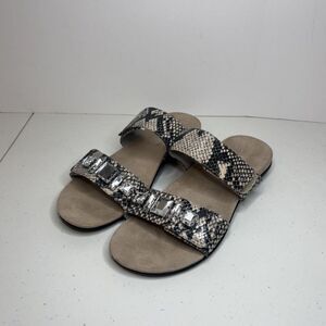 Vionic Orthotic Snakeskin Leather Embellished Jewel Slide Sandals Womens Suede