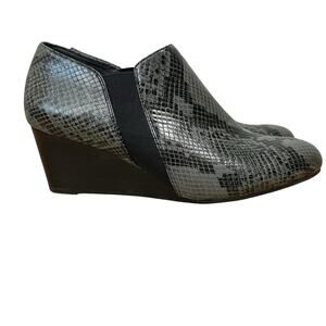 Vionic Orthotic Tanton Leather Snake Print Wedge Slip On Booties Size 9