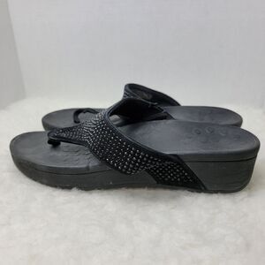 Vionic Pacific Naples Black Suede Leather Jeweled Wedge Flip Flop Sandals Size 10 Good Condition See Pictures For More Details.