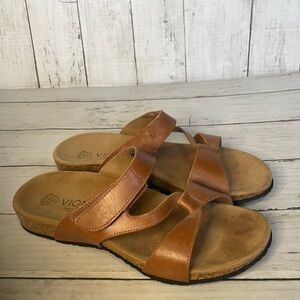 Vionic Pamplona Tan Leather Slide Sandal