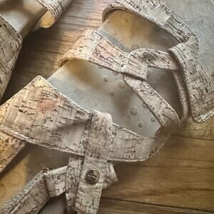 Vionic Paros Gold Cork Print Strap Slingback Sandals