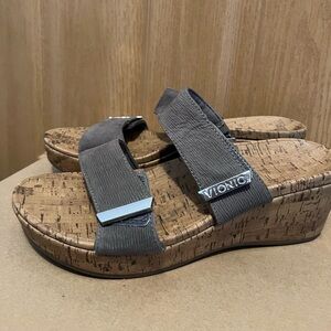Gray sandals with silver hardware. Hook and loop adjustable straps. Size 10 with approx. 3” wedge heel. In good condition. Really good support - what Vionic is known for Bundle with other items and save. Item B7
