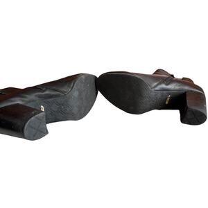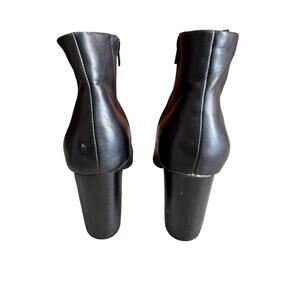 Vionic Perk Kennedy Heeled Leather Ankle Boots in Black, size 9.5. Good preowned condition, inside zipper, almond toe. 1 small nick at back leather of one boot - see pic. Comfort insole and non slip soles