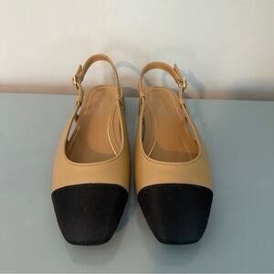 Step out in style with these elegant black and tan slingback flats. Leather upper. New without box. Size 9.5 Smoke free home.