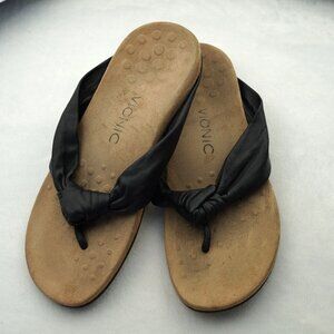 Vionic Pippa Black Leather Orthotic Flip Flops Size 6