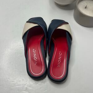 Vionic Poppy Miramar Leather Colorblock Slide Sandal Navy/Cream Women's 6M NWOB