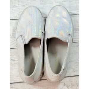 Vionic Pro Avery Iridescent Metallic Silver Slip On Shoes Women's Size 8.5