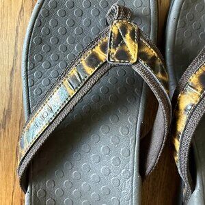 Vionic QVC Tidal Animal Print Leather Ortho Thong Sandals Flip Flops Women 6