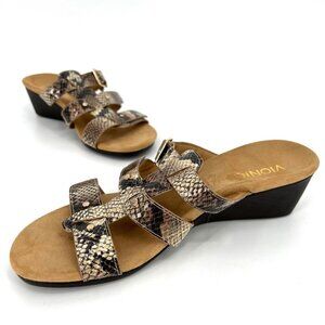 Vionic Radia Triple Strap Wedge Slide Sandals Snakeskin Snake Size 9