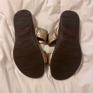 Stylish metallic gold slides. Comfortable and chic, great for wide feet or those with ortho needs.Barely worn condition