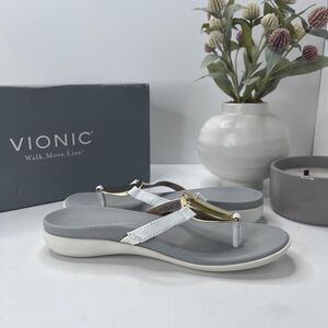 Vionic Raysa Leather Slip On Sandals White/Grey H9679L1100 Women's US 5 M