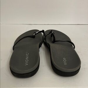 Vionic Raysa Black Silver Toe Post Thong Sandals