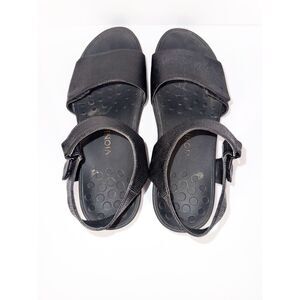 Vionic Raz Metallic Sandals Wedge Comfort Casual Adjustable Straps Black Size 9