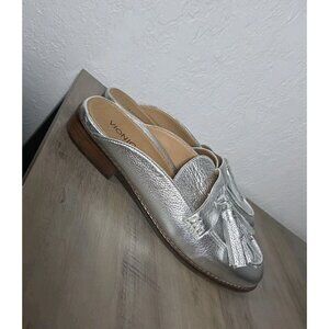 Vionic Reagan 9 Shoes Metallic Silver Leather Tassel Loafer Slip On Mules