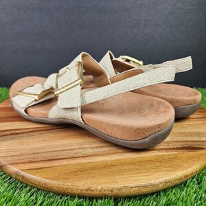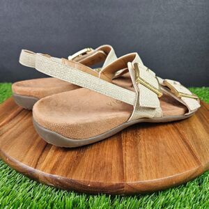 Vionic Reese Sandals Women's Size 9 Wide Oatmeal Gold Sling Back Comfort Strappy