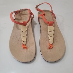 Vionic Rest Miami Gold Orange T Strap Sandals Shoes Size 6.5 Colorful Comfy