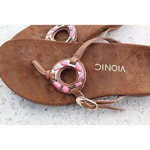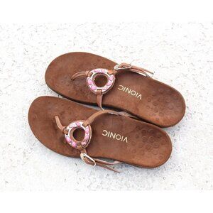 Vionic Ricci Sandals Brown Flip Flops Size 8 US Pink Medallion Slip on