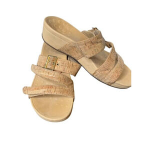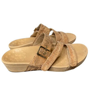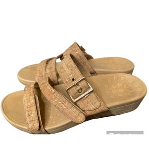 Vionic Rio Women's Size 10.5 Gold Cork Adjustable Slip-On Comfort Sandals Shoes
