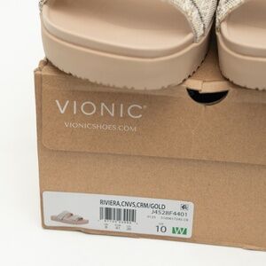 Vionic - Riviera Canvas Cream Gold Slide Sandals Size 10W