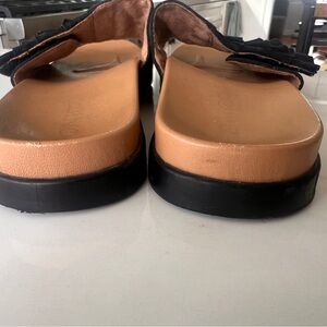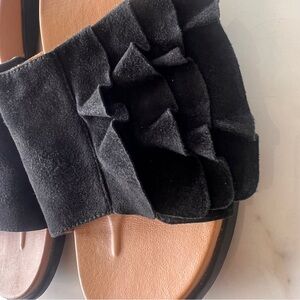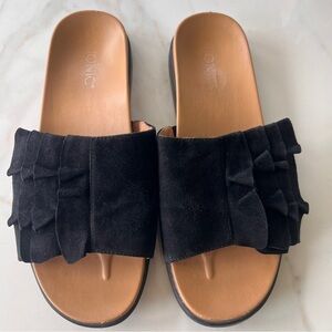 Vionic Roni Black Suede Ruffle Sandal Slide Size 9