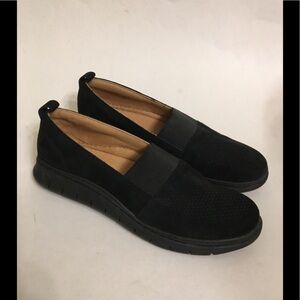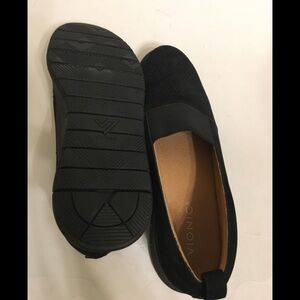 Practically new, no box, Vionic Roxan Shoes Black Nubuck Slip On Comfort, Clean sole. Personally inspected. Comes from smoke free home, size 9, The Vionic Roxan is a casual women's nubuck slip-on shoe with elastic goring and breathable perforations.