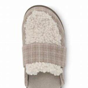 Vionic SZ 8 Gemma ll Cream Plaid Sherpa Slip On Orthro Clog Mocha relax Comfort