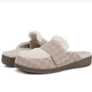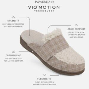 Vionic SZ 8 Gemma ll Cream Plaid Sherpa Slip On Mules Clog Mocha relax Comfort Orthro