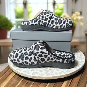 leopard print slippers, orthotic slippers, supportive house shoes, arch support, comfort footwear, podiatrist designed, adjustable strap slippers, mule slippers, cozy slippers, memory foam style comfort, casual comfort, loungewear, work from home, gift for her,