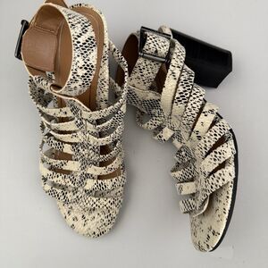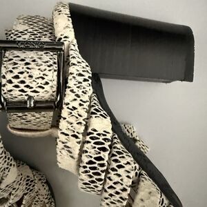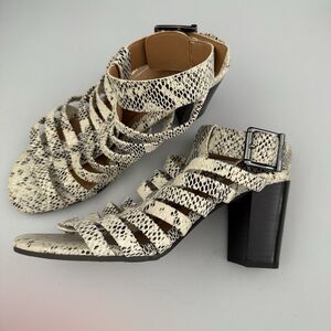 Vionic Sami Block Heel Sandal 6.5 Caged Black White Snake Print Very Comfy NWOB