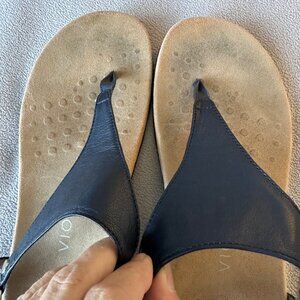 Vionic Sandal Women 9.5 Rest Kirra Strap Orthotic Leather Black TVW5126 Thong