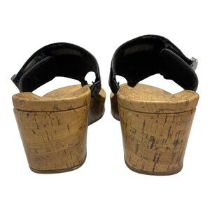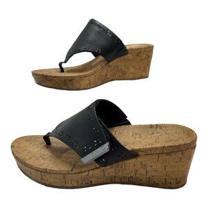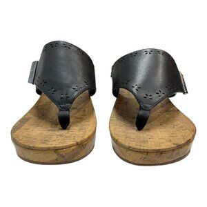 Vionic Sandal Womens 9 Anitra Black Leather Laser Cut Floral Platform Wedge Boho
