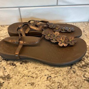 Sandals with great arch support for extra comfort. Cute and good for your feet! Great condition! Pretty bronze color.