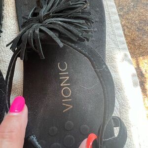 Vionic Shoes Vionic Sosha Fringe T-Strap Black Sandals Women's Size 9 Comfort Shoes