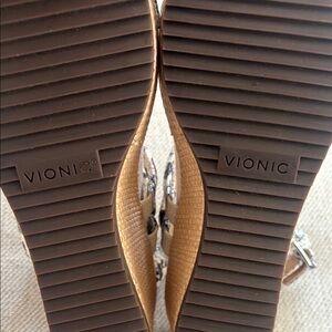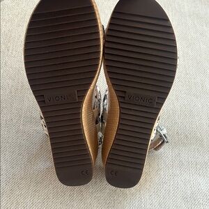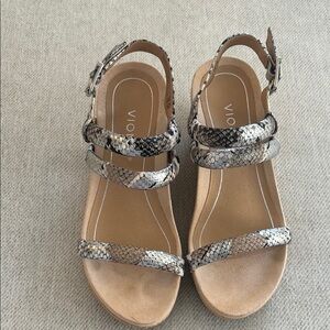 Stylish Vionic sandals with a faux snake print design. Features adjustable straps for a perfect fit. Size 6.5. Excellent condition.