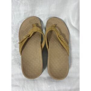 Vionic Sandals 9 Patty Flip Flops Tan Thongs Buckle Comfort Leather