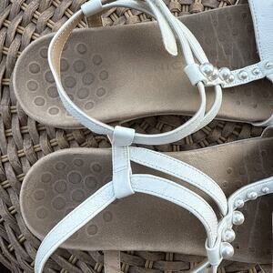 Vionic Sandals Shoes Womens Size 11 Mikah White Leather Strap Pearl Stud Comfort