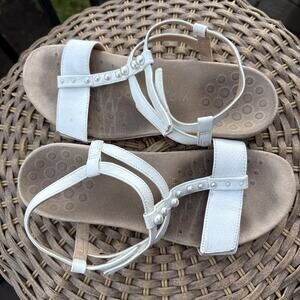 Vionic Sandals Shoes Womens Size 11 Mikah White Leather Strap Pearl Stud Comfort