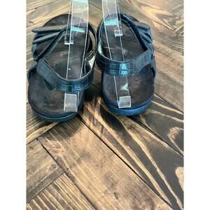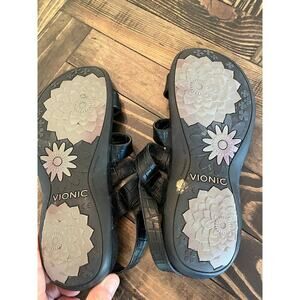 Vionic Sandals Women 8 Black Leather Orthotic Comfort Walking Travel Summer Shoe