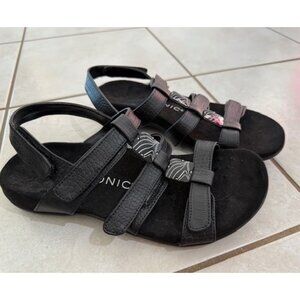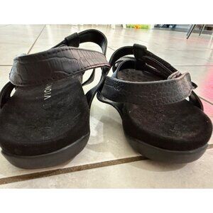 Vionic Sandals Womens 7 Amber Strappy Black Leather Open Croc Embossed Casual