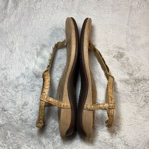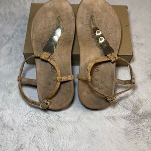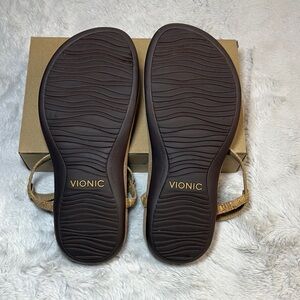Stylish Vionic sandals with metallic gold accents. Ideal for everyday wear.