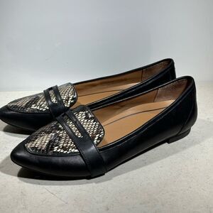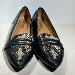 Vionic Savannah Boa Womens Size 9 Black Leather Ballet Flats 2318878 Snake Print
