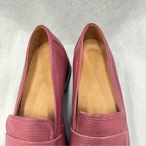 Vionic Sellah Burgundy Red Pebbled Leather Square Toe Loafer size 10 block heel