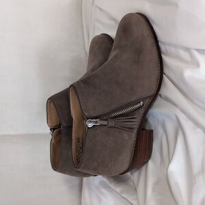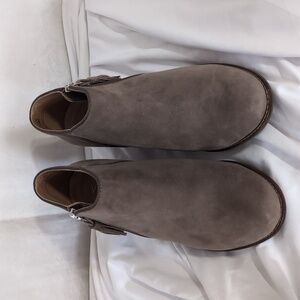 Vionic Serena Greige Suede Heeled Bootie Outer Zip Size 6.5