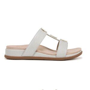 Vionic Serra Taupe Croc Embossed Leather Slide Sandals Women's Size 6.5, NIB