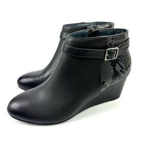Vionic Shasta Ankle Boot 8 Charcoal Snakeskin Leather Zip Up Bootie Wedge Womens