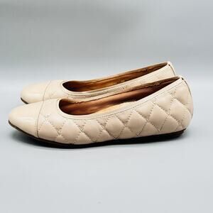 Vionic Shoes Womens 6 Beige Leather Desiree Ballet Flats Quilted Cap Toe Comfort