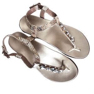 Vionic Shoes Womens 6.5 Gold Textured Leather Footbed Sandals Rhinestones