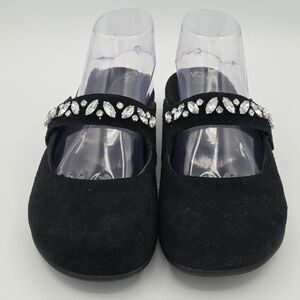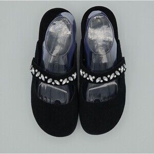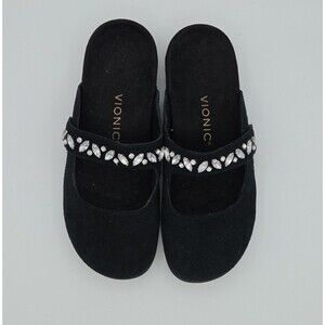Vionic Shoes Womens 8 Jenelle Mary Jane Mules Black Suede Slip On Rhinestone EUC